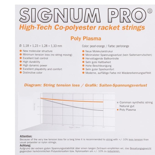 Descrição da Corda Signum Pro Poly Plasma 1.28mm Pack com 06 Unidades - Set Individual - A Signum Pro é uma empresa de operação mundial na indústria do Tênis e oferece uma gama de produtos únicos e de alta qualidade.Os resultados estão aí para provar, os jogadores do time Signum Pro estão constantemente entre os tops da ATP.