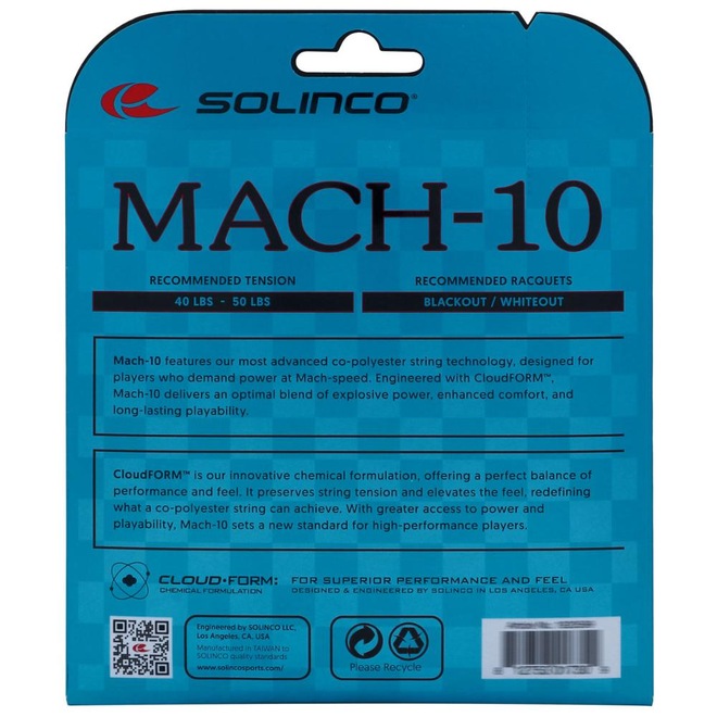 A Solinco é especialista no desenvolvimento e produção de equipamentos de tênis com a mais alta qualidade e desempenho do mercado. Com mais de 30 anos de vasta experiência técnica, sua equipe permanece comprometida em liderar o setor por meio de tecnologias inovadoras. Apresentamos a Corda Solinco Mach-10 16 1.30mm - Set Individual, que, com tecnologia avançada, oferece o equilíbrio perfeito entre potência, controle e conforto, permitindo ao jogador maximizar sua precisão e aproveitar cada jogada com mais eficiência e confiança.