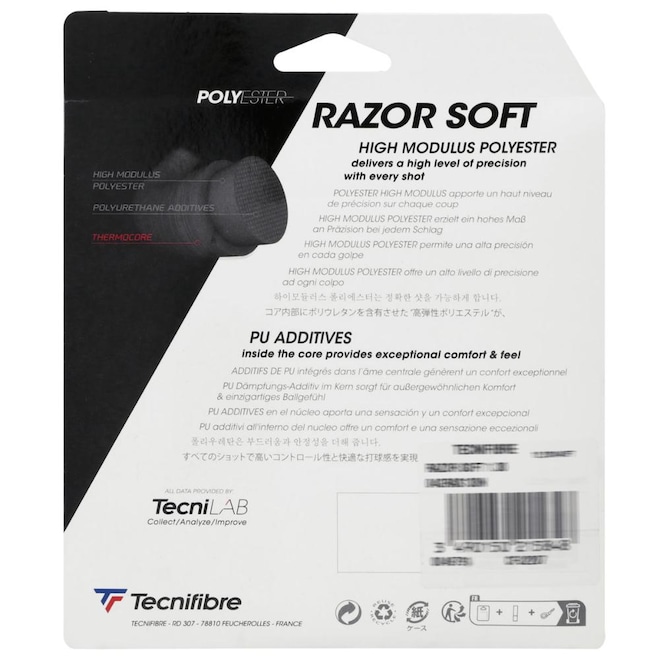 Surgiu na França em 1979, a TecniFibre desenvolve produtos esportivos como acessórios para Tênis, Squash e Padel comercializando seus produtos em vários países ao redor do mundo. Sempre inovadora, seus produtos trazem o que há de melhor em tecnologia, um exemplo disso é a Corda Tecnifibre Razor Soft 16 1.30mm - Set Individual - Preta foi desenvolvida em poliéster, é uma corda versátil que proporciona controle e potência em suas jogadas.