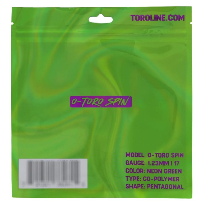 - Detalhamento: Corda na cor verde neon, indicada para todos os tipos de jogadores, formato pentagonal que proporciona spin e potência. Para quem joga no fundo e solta o braço a O-Toro Spin entrega o impulso extra no segundo saque e spin agressivo sem perder controle. Cada embalagem vem com dois meios sets (aproximadamente 6,7 m de comprimento), suficientes para encordoar 1 raquete de tênis;