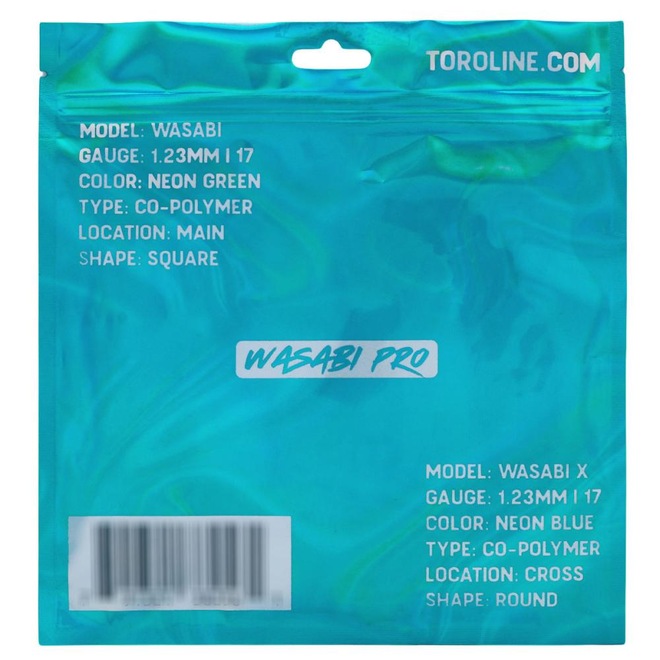 Com sede em Los Angeles, a Toroline nasceu com um propósito ousado: transformar a maneira como os tenistas sentem cada golpe. A missão é simples e poderosa: entregar mais spin, mais controle, mais conforto em resumo, mais de tudo que realmente eleva seu jogo. Cada corda é desenvolvida com tecnologia avançada, testada em alto nível de desempenho e desenhada para atender desde jogadores competitivos até aqueles que buscam aprimorar sua experiência nas quadras. Agora, conheça uma das cordas que traduzem toda essa filosofia em cada detalhe, a Corda Toroline Wasabi Pro Hybrid 17L 1.23mm Verde Quadrado X Azul Redondo - Set Individual.