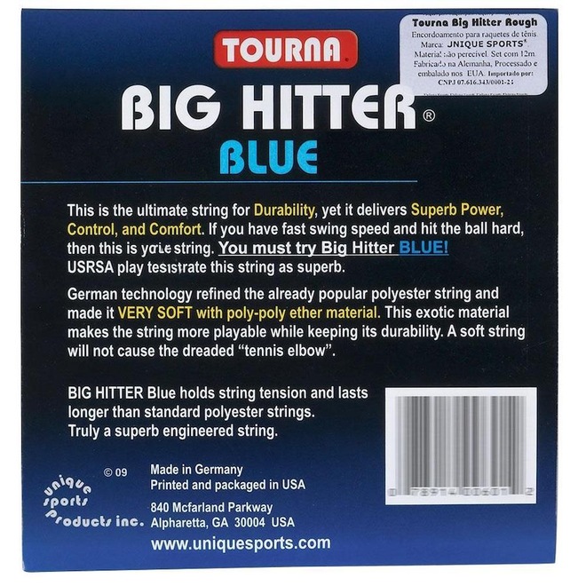 Descrição da Corda Tourna Big Hitter 16L 1.30mm Set Individual A Tourna é uma marca internacional que tem como foco desenvolver produtos de qualidade e inovação para melhor desempenho nos jogos.A Corda Tourna Big Hitter 16L 1.30mm Set Individual desenvolvida para proporcionar controle e durabilidade.