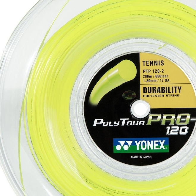 Descrição da Corda Yonex Polytour Pro 17L 1.20 Amarela - Rolo com 200 metros Com foco em criar produtos de qualidade e que ajudem no desempenho dos tenistas, a Yonex é uma marca destaque no meio esportivo, pois está sempre surpreendendo em tecnologias e inovação.