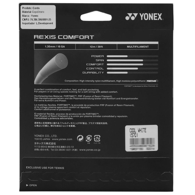 Com foco em criar produtos de qualidade e que ajudem no desempenho dos tenistas, a Yonex é uma marca destaque no meio esportivo, pois está sempre surpreendendo em tecnologias e inovação. A Corda Yonex Rexis 16 1.30mm Natural - Set Individual é ideal para jogadores agressivos que buscam mais potência sem abrir mão do conforto.