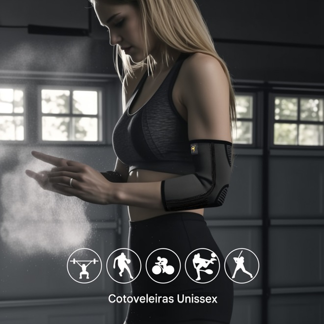 Notas: 1 peça * Cotoveleiras podem ser usadas no braço esquerdo e direito.A cotoveleira é BILATERAL, ou seja, você pode usá-la dos DOIS LADOS, com muita facilidade. Também se modela de forma ANATÔMICA proporcionando mais fixação e ajuste preciso ao cotovelo. Possui faixa com fecho ajustável para que você acerte da maneira que preferir.
