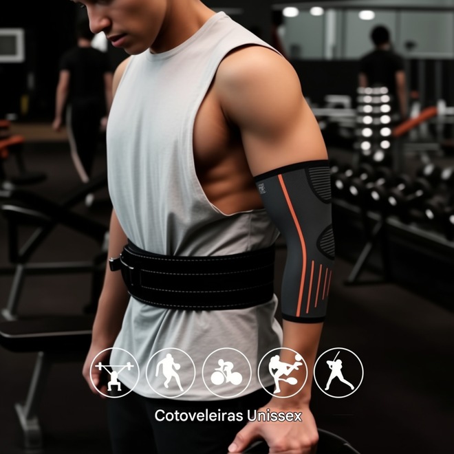 Notas: 1 peça * Cotoveleiras podem ser usadas no braço esquerdo e direito.A cotoveleira é BILATERAL, ou seja, você pode usá-la dos DOIS LADOS, com muita facilidade. Também se modela de forma ANATÔMICA proporcionando mais fixação e ajuste preciso ao cotovelo. Possui faixa com fecho ajustável para que você acerte da maneira que preferir.