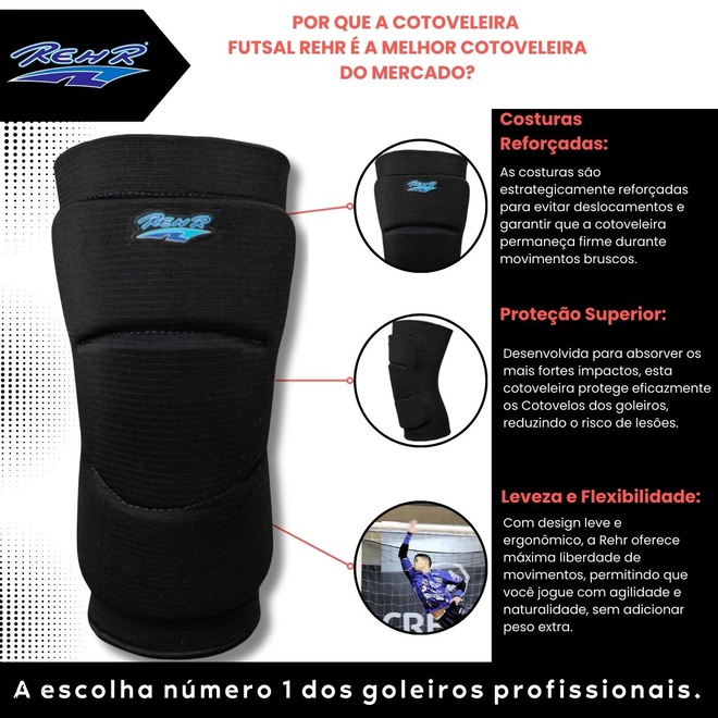 Diferentemente de outras cotoveleiras disponíveis no mercado, nossa versão profissional destaca-se pelo uso de materiais premium e pelo design focado nas necessidades reais dos goleiros.