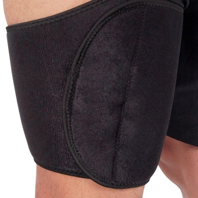Proporciona suporte e compressão para a área superior da coxa melhorando a sensação de estabilidade e segurança.