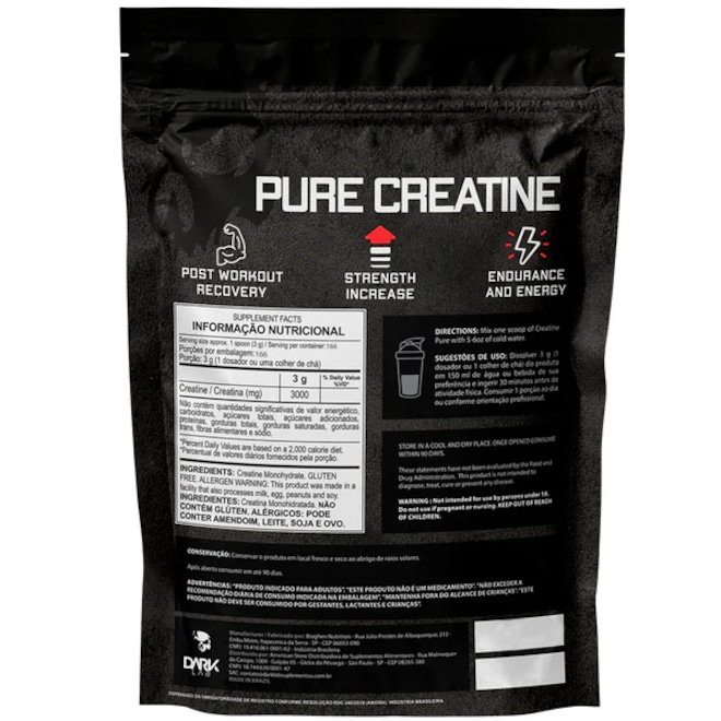 Gluten Free.Garanta já sua Creatina Pura Dark Lab Refil 500g e sinta a verdadeira evolução em cada treino!
