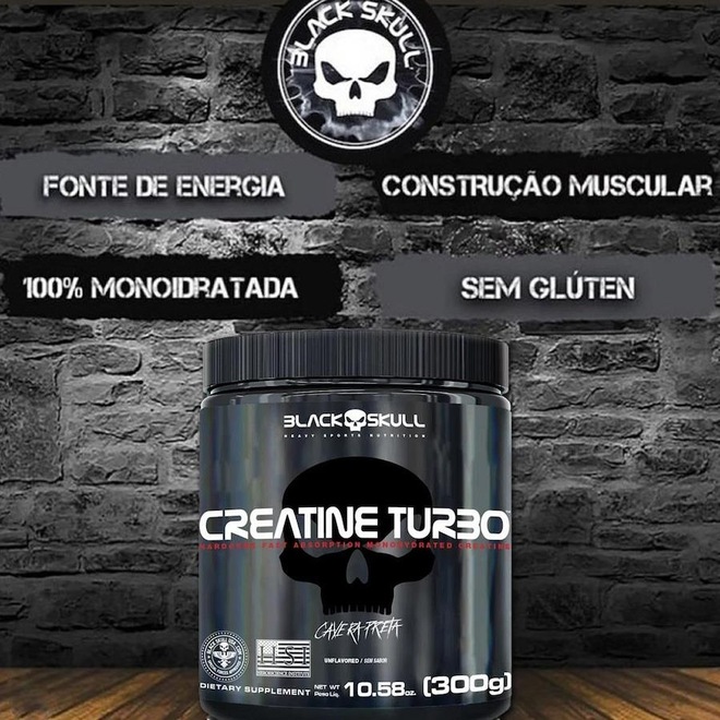 - Sobre o produto - Creatina Monohidratada Black Skull Turbo - 300g- A creatina monohidratada é um dos ativos mais estudados pela ciência nos últimos anos. - Além dos benefícios conhecidos para o esporte, seu consumo apresentou efeitos anti-inflamatórios melhorando a saúde de forma geral e a melhoria da performance cerebral por atuar como neuroprotetora, diminuindo a demanda cerebral por oxigênio (1).