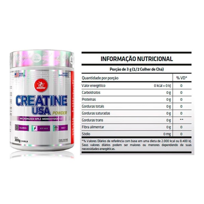 Creatine USA é composta da mais pura creatina em pó na forma monohidratada e micronizada.