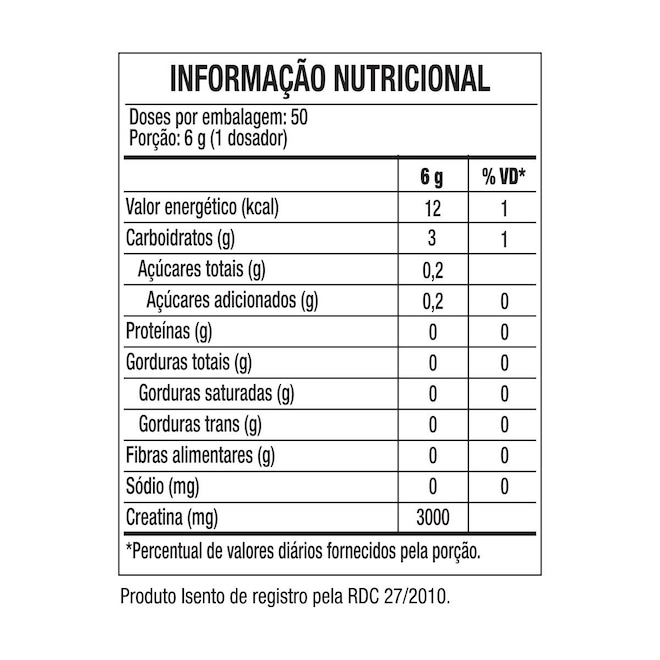 (1)Rae, Caroline et al. Oral creatine monohydrate supplementation improves brain performance: a double-blind, -controlled, cross-over trial. Proceedings. Biological sciences vol. 270,1529 (2003): 2147-50. doi:10.1098/rspb.2003.2492. Acesso em: 26 de jun. de 2022. (2) Tomcik KA, Camera DM, Bone JL, Ross ML, Jeacocke NA, Tachtsis B, Senden J, VAN Loon LJC, Hawley JA, Burke LM. Effects of Creatine and Carbohydrate Loading on Cycling Time Trial Performance. Med Sci Sports Exerc. 2018 Jan;50(1):141-150. doi: 10.1249/MSS.0000000000001401. PMID: 28806275. Acesso em: 26 de jun. de 2022.