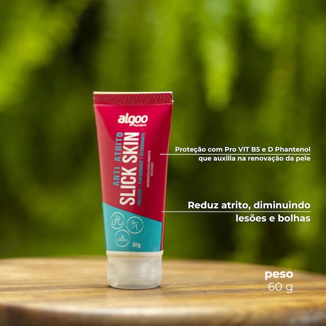O Creme Anti Atrito Algoo é indicado para proteger a pele contra os atritos causados pelo movimentos repetitivos das atividades esportivas. É enriquecido com Vitamina E e D'Pantenol e possui ação desodorante contra odores da transpiração.