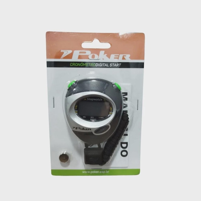 Este cronômetro da Poker é uma excelente opção para as práticas esportivas. O acessório traz visor digital com resistência à água e possui diversas funções como: relógio, calendário, cronômetro e alarme; além de vir com botão de Reset, Mode e Start/Stop.