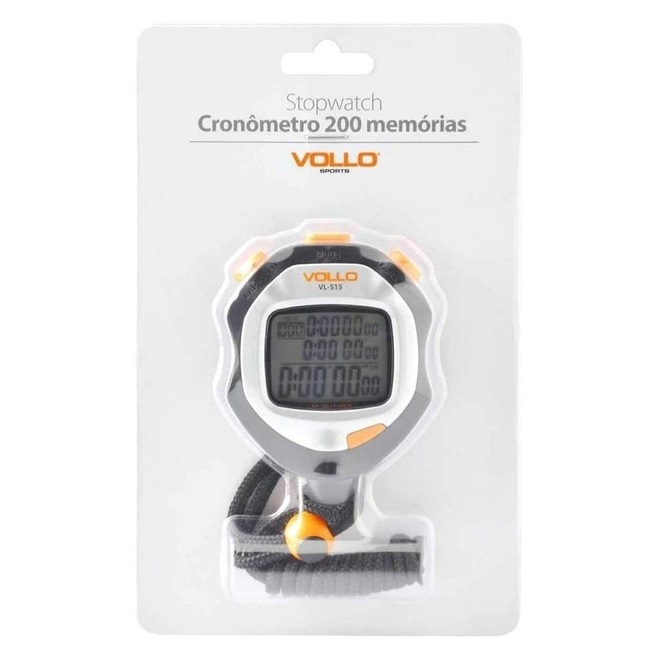 O cronômetro digital vollo vl515 é indicado para o segmento esportivo, e na indústria, com a finalidade de registrar o tempo de processos onde é relevante o controle da produtividade possui as seguintes funções: memória para 200 voltas e parciais com precisão de 1/100 de segundo.