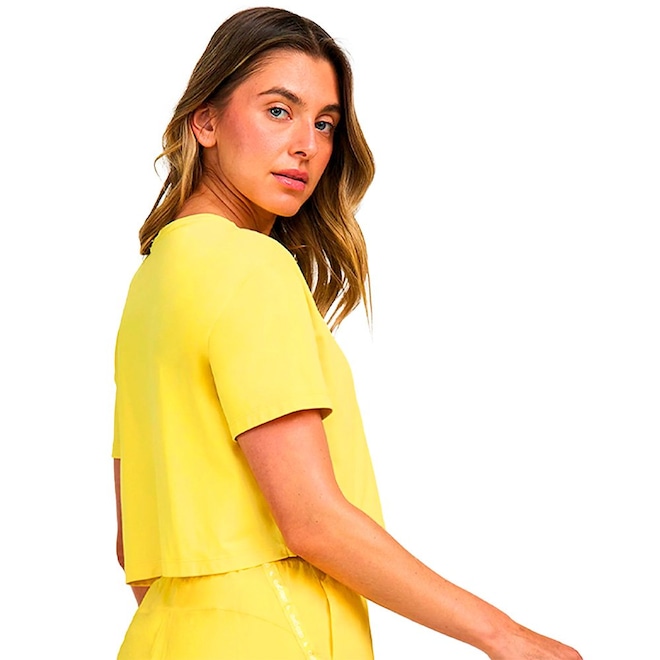 O Cropped Alto Giro Personalizado Feminino apresenta gola de ribana com decote fechado e comprimento cropped. Modelagem com shape mais solto. É desenvolvida em tecido de poliamida super leve com textura sofisticada, toque macio, fresco e secagem rápida. É uma peça versátil que transita entre o fitness e casual. Perfeito para compor os seus looks! 100% poliamida;Leve abertura nas laterais;Tiras de elástico personalizado.