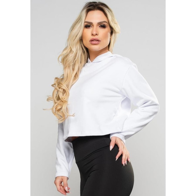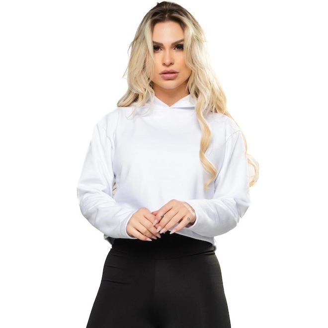 1. Blusão de Moletom Cropped com Capuz MVB Modas Flanelado - Feminino - Foto 1