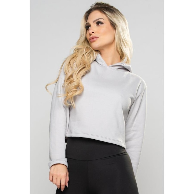 Blusão de Moletom Cropped com Capuz MVB Modas Flanelado - Feminino