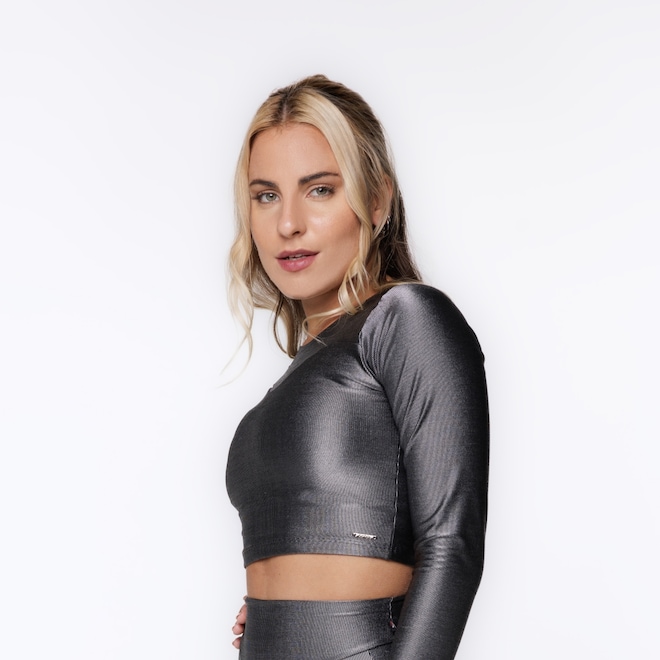 Cropped de Manga comprida, super versátil, pode ser usado na academia, no dia a dia e e também em produções mais elaboradas.