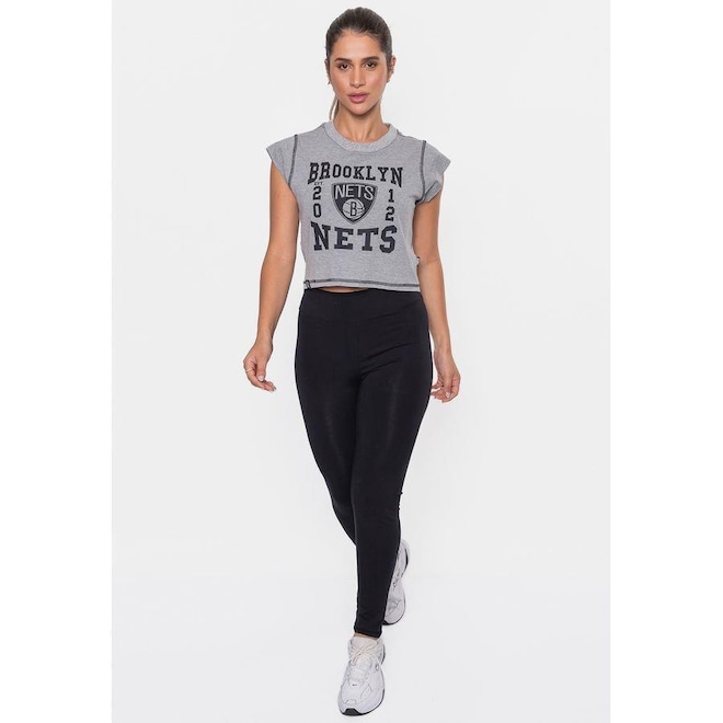 Cropped NBA Feminino College Brooklyn Nets Cinza Mescla Claro