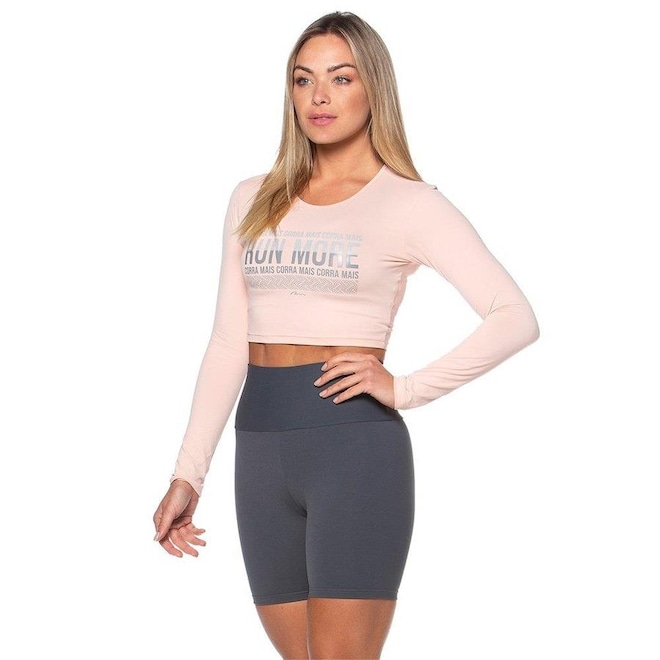 O Cropped Run More Ultracool Fit Feminino apresenta modelagem cropped com manga longa e decote redondo.Possui serigrafia em duas cores na frente com escrita: "RUN MORE" e a tradução: "Corra Mais".
