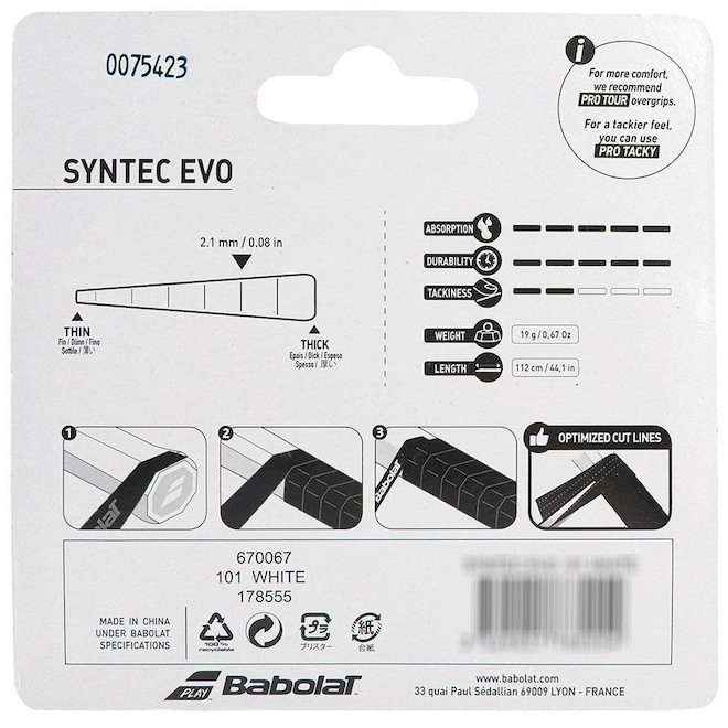 Descrição do Cushion Grip Babolat Syntec Evo Branco Sempre preocupada em inovar e desenvolver produtos da mais alta qualidade, a Babolat hoje está presente em mais de 100 países.