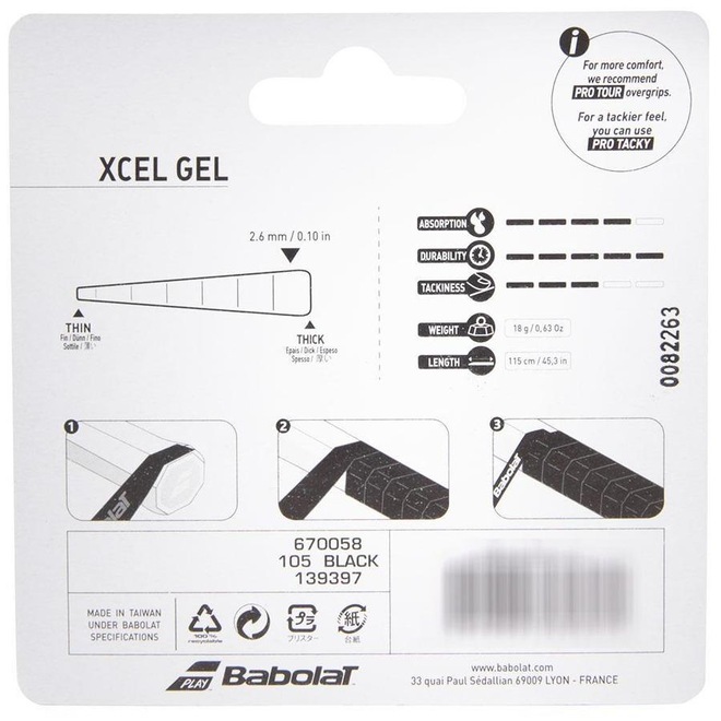 Descrição do Cushion Grip Babolat Xcel Gel Preto e Branco Sempre preocupada em inovar e desenvolver produtos da mais alta qualidade, a Babolat hoje está presente em mais de 100 países.A marca que proporciona aos atletas todos os tipos de produtos direcionados ao Tênis.