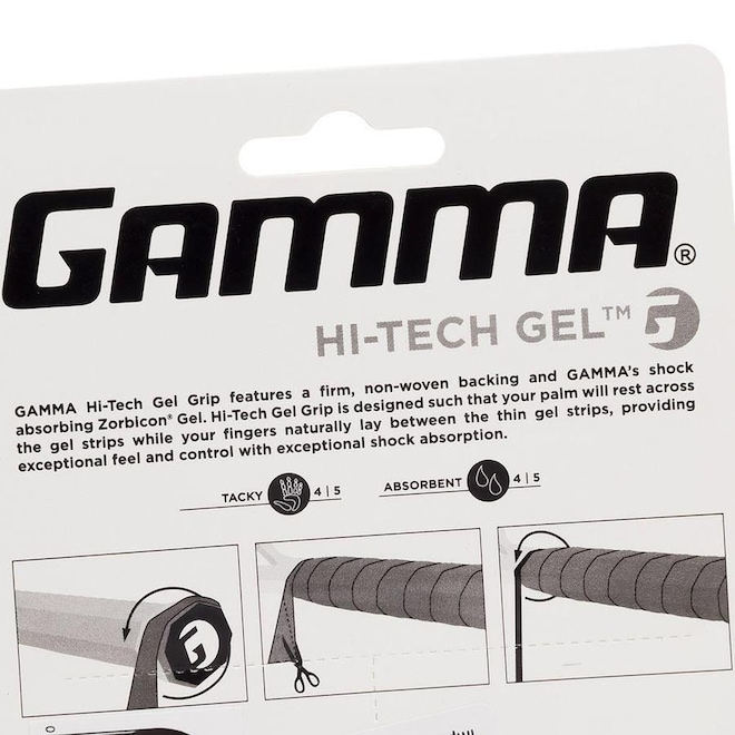 Descrição do Cushion Grip Gamma Hi-Tech Gel Preto Marca internacionalmente reconhecida por seus produtos de qualidade, a Gamma tem como foco principal inovar em tecnologias que melhorem o desempenho dos tenistas e se consolidou como referência em produtos de alta performance, durabilidade, resistência e conforto.Com base de espuma e gel para redução de impactos, o Cushion Grip Gamma Hi-Tech Gel Preto oferece alta aderência, uma pegada firme e extremamente confortável, proporcionando ótimo agarre da raquete.