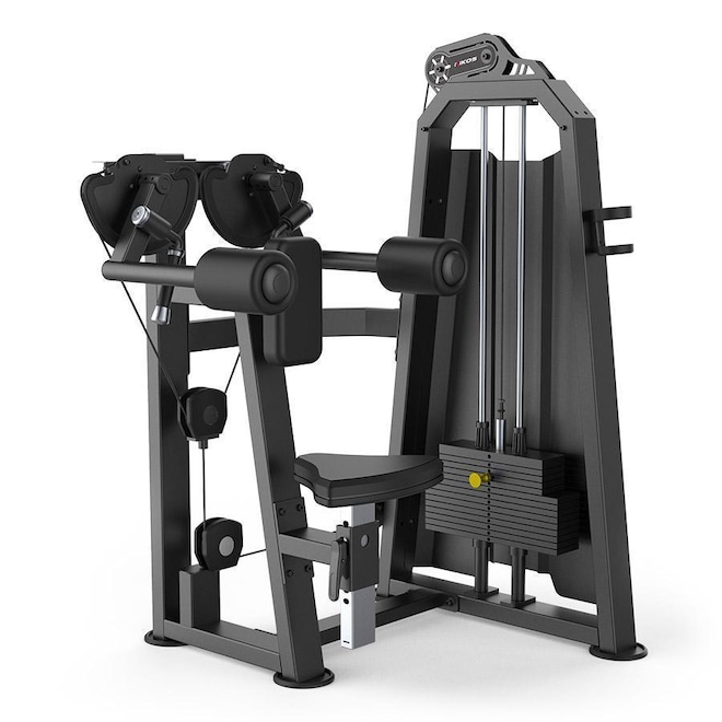 Equipamento profissional, para o uso em academias de ginástica e deve ser utilizado somente com o acompanhamento de um profissional de educação física, que possa indicar qual a postura correta para fazer o exercício, assim como indicar a melhor quantidade de peso a ser utilizada. F ocado no desenvolvimento e melhora do desempenho do músculo Deltoide.Dimensões: