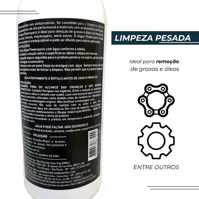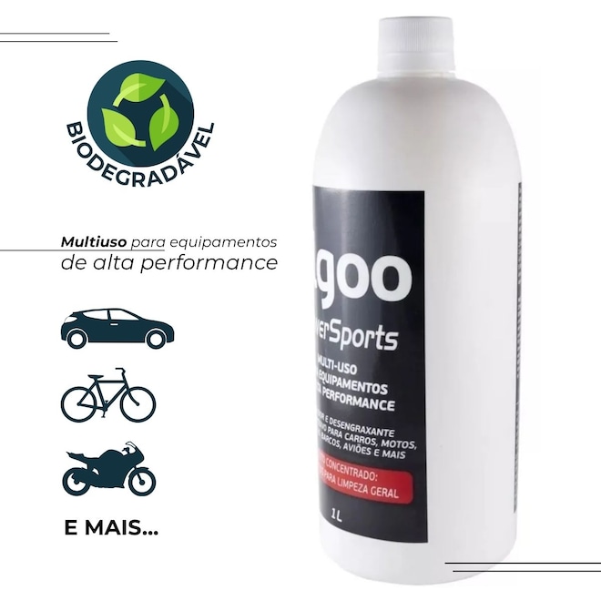 Desenvolvido com anticorrosivos, foi concebido para a limpeza de equipamentos de alta performance e materiais com acabamentos sofisticado. O Algoo PowerSports é ideal para a remoção de graxas e óleos na limpeza de corrente, relação, engrenagens, entre outros. O algoo Powersports é feito com tenso ativo biodegradável e pode ser diluído para outras aplicações.