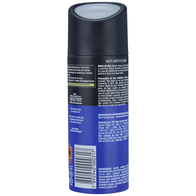 - Garantia do Fornecedor - Contra Defeito de Fabricação - Conteúdo da Embalagem - 1 Desodorante - SAC do Fornecedor - ADIDAS: Brasil 0800 8 234 327 - Grande São Paulo (11) 2161 2961