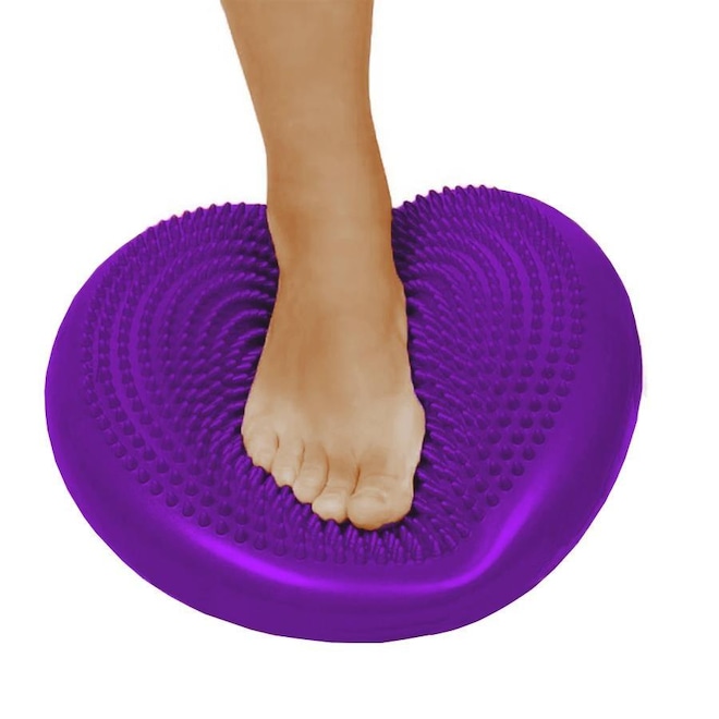 Fabricado em PVC resistente, o Disco de Equilíbrio Inflável tem 33 cm de diâmetro e acompanha uma bomba com bico dupla função: acoplado à bomba para inflar e desacoplado para desinflar o disco.