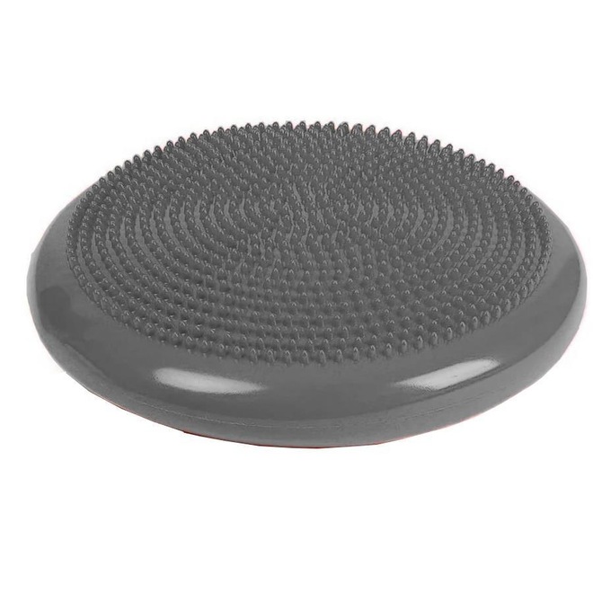 Fabricado em PVC resistente, o Disco de Equilíbrio Inflável tem 33 cm de diâmetro e acompanha uma bomba com bico dupla função: acoplado à bomba para inflar e desacoplado para desinflar o disco.