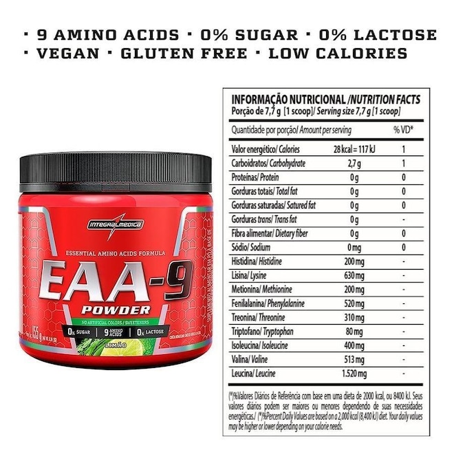 [NET WT: 0,34 lbs]Produto classificado como:SUPLEMENTO ALIMENTAR EM PÓ À BASE DEAMINOÁCIDOS SABOR DE MAÇÃ VERDE.