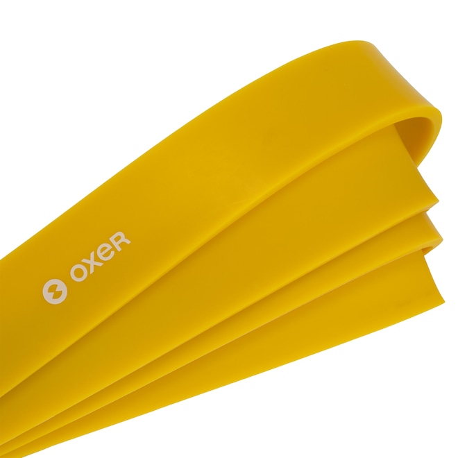 O elástico para treino Oxer Super Band Forte 35 kg, feito de látex resistente, é ideal para fortalecimento muscular.