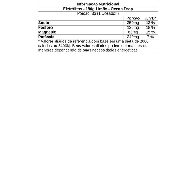 Eletrólitos são sais minerais que ajudam a equilibrar líquidos e regular funções vitais do seu corpo, como o funcionamento dos músculos. A nossa composição contém sódio, potássio, fósforo e magnésio, os principais minerais que são perdidos em atividades físicas intensas e naturalmente ao longo do dia, diferente de outros produtos do mercado nossa formulação não apresenta carboidratos e portanto apresenta baixo valor calórico.