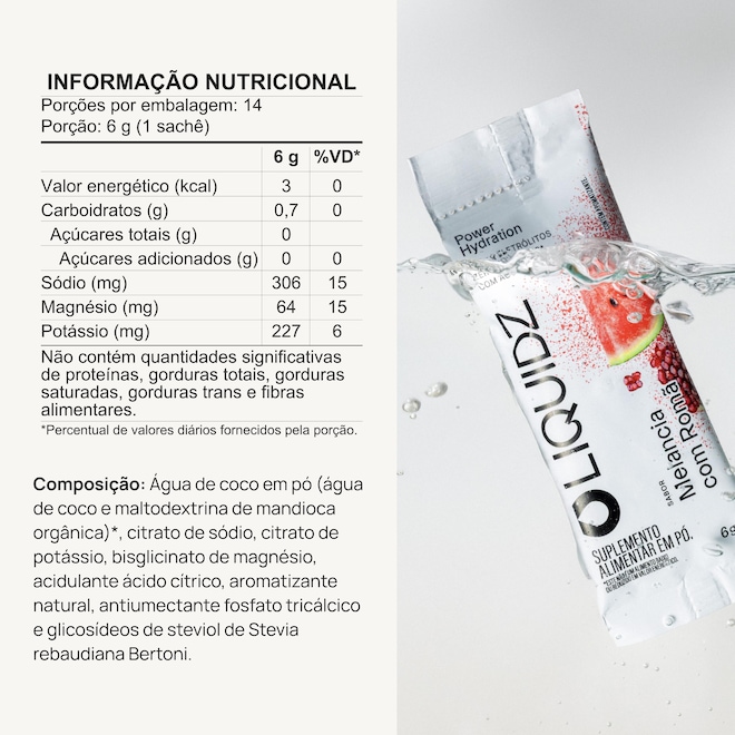 LIQUIDZ é uma solução de hidratação que combina os principais eletrólitos essenciais como sódio, potássio e magnésio. Esses minerais são fundamentais para manter a hidratação adequada, melhorar a função muscular e nervosa, e equilibrar o pH do corpo. LIQUIDZ é formulado para ser consumido diariamente, especialmente ao acordar, durante e após atividades físicas, para garantir uma hidratação eficiente e rápida.