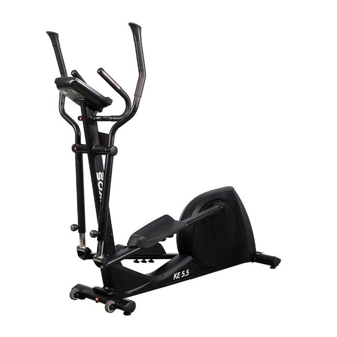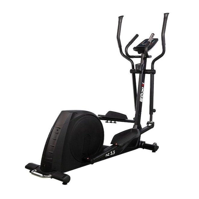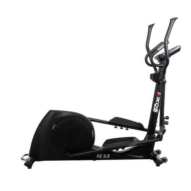 O elíptico Kikos KE5.5 oferece conforto aliado à tecnologia. Com ajuste de altura dos pedais, porta revista e squeeze, apoios emborrachados para as mãos, além de mp3 com caixa de som. O equipamento possui sistema de resistência eletromagnética que garante que os membros inferiores, principalmente o quadríceps, e os superiores sejam trabalhados de maneira uniforme durante o exercício. Controle a intensidade do treino com 12 programas próprios e display LCD touch com luz e hand grip.