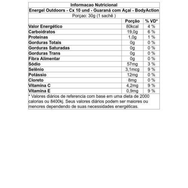Energético em Gel BodyAction Energel Outdoors - Guaraná com Açaí - Caixa com 10 Unidades