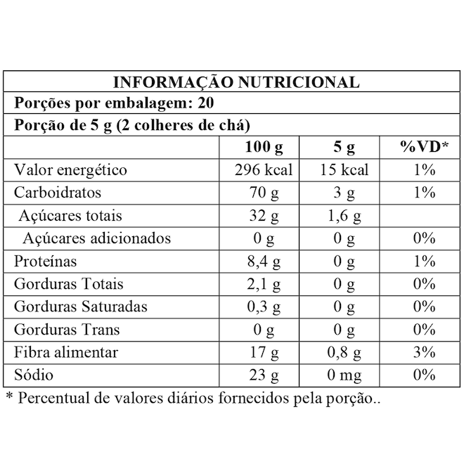 Tipo de Suplemento Energético Contém Glúten Não Contém Lactose Não Contém Glicose Não Contém Frutose Não Sugestão de Consumo Por Dia Cuidados de Conservação Manter o produto em local fresco e seco.