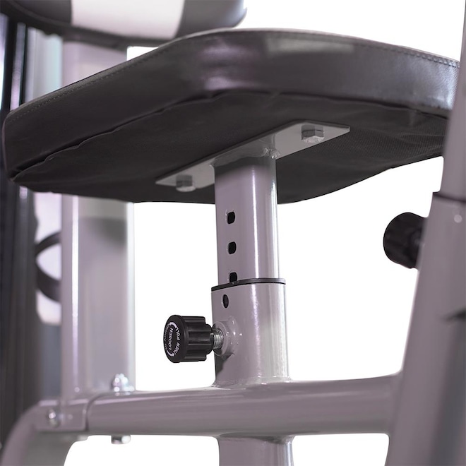Além de possuir ajuste de altura no banco, se adaptando seguramente a diversos usuários, a Multi 2 ainda conta com banco acolchoado de alta densidade, combinando perfeitamente o conforto e a firmeza para seus treinos, além de pegada emborrachada e pontos de apoio para pernas e braços acolchoados.