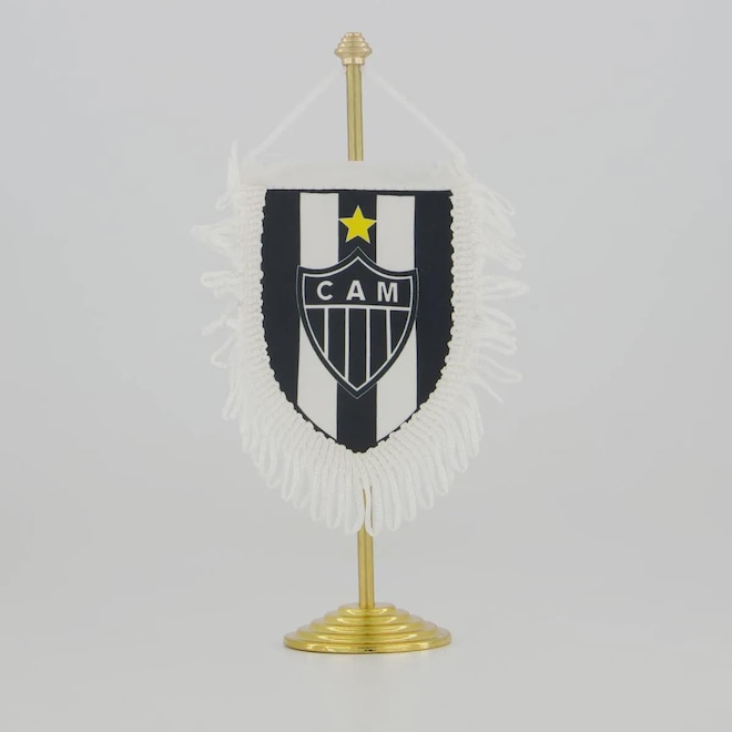Dimensões aproximadas da flâmula (A x L): 13 x 10 cmDimensões aproximadas do mastro (A x L): 20 x 6 cmComposição da flâmula: 100% PoliésterComposição do mastro: 100% MetalPeso aproximado: 100 gIndicado para: CasualContém: 01 unidadeOrigem: NacionalClube: Atlético MineiroGênero: UnissexTamanho único