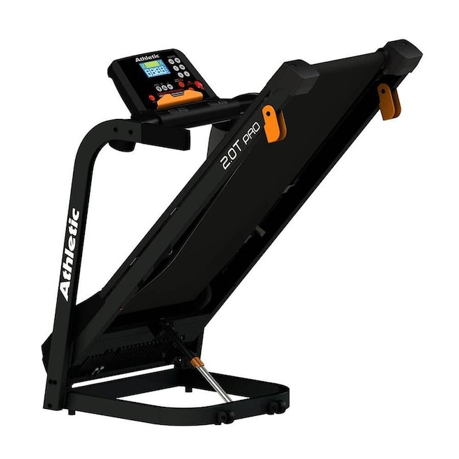 Melhore o seu condicionamento físico e torne-se um atleta de alta performance com a nova Esteira Ergométrica Athletic Profissional 2.0T. Agora você pode ter toda tecnologia e confiabilidade usada em Academias, Hotéis, Condomínios e Estúdios de forma compacta e que cabe em sua sala de estar. Seu poderoso Motor WEG de 2.0 HP, consegue chegar até 16 Km/h e é indicada para usuários pesando até 130Kg. Uma das mais rápidas e robustas de seu segmento. Sua superfície de caminha entrega 400 x 1265 mm de área útil para você conseguir caminhar, trotar ou correr com segurança. Seu monitor completo, lhe possibilita um monitoramento de seu treino com funções premium como IMC, % de Gordura Corporal, Recuperação e THR (Alvo de Batimentos Cardíacos) além dos mais comuns como Velocidade, Distânica, Tempo, Calorias, Pulso entre outros. Depois do treino, é só usar o Guarda-Fácil, colocando-a na posição vertical, e aproveitar o espaço extra facilitando a limpeza no local. Não perca tempo e melhore agora sua qualidade de vida com a Esteira Athletic Profissional 2.0T.