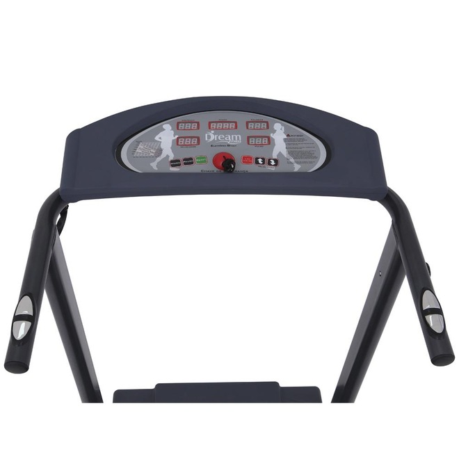 Esteira para uso residencial, motor 2.1HP, capacidade de 120Kgs, velocidade de 1 a 13Kmh, superficie da caminhada 109 x 40cm, 06 amortecedores de impacto, hand grip, 3 níveis de inclinação, dobrável, monitor com 5 funções tempo, velocidade, distância, calorias e batimentos cardiacos.