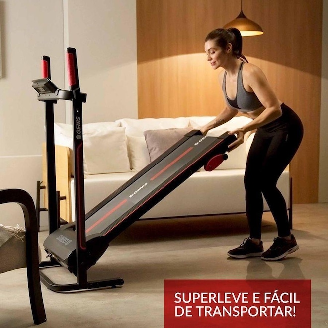 Equipamentos pesados, complicados e que ocupam muito espaço... Riscos de se exercitar ao ar livre... Nada disso pode te impedir de cuidar da saúde e de se manter em atividade! Agora ficou fácil colocar seu corpo em movimento, no seu ritmo e quando quiser, com o resultado que você precisa para alcançar seus objetivos! Conheça a inovadora Esteira Ergométrica GENIS GT 500! Ela é perfeita para quem quer começar ou deseja manter a prática de sua atividade física, sem complicação! Porque ela é moderna, compacta e fácil de usar! Com GENIS GT 500, você melhora a disposição, aumenta a resistência, mantém a boa forma, queima as gordurinhas e ganha mais saúde no dia a dia! E o melhor: sem precisar sair de casa! Escolha qualquer ambiente da sua casa e aproveite! GENIS GT 500 é tão compacta que se adapta perfeitamente aos ambientes sem atrapalhar o seu espaço! Mais leve que as esteiras comuns do mercado*, GENIS GT 500 possui rodinhas para você levá-la facilmente de um cômodo ao outro sem dificuldades! Caminhadas com mais diversão! Com GENIS GT 500, você mantém a rotina de exercícios sem abrir mão da diversão! Apoie seu Smartphone ou Tablet sobre seu exclusivo suporte e assista às suas séries, aos filmes e vídeos de pertinho, ouça suas músicas preferidas ou se mantenha atualizado nas suas redes sociais! Perfeita para todos os condicionamentos físicos! Para você que deseja colocar em prática a caminhada no dia a dia, de forma fácil, simples e eficiente, sem precisar sair de casa, ela é a solução perfeita para todos os condicionamentos físicos! Você se sentirá motivado a cada passo dado e vai entrar em forma com muito conforto. E para sua segurança, GENIS GT 500 possui desligamento automático em caso de imprevistos! Completa e simples de usar! Com um painel digital amigável e fácil de usar, ela indica a velocidade, a distância percorrida, as calorias gastas, o tempo de treino e também monitora sua frequência cardíaca, graças aos seus sensores nas laterais do painel. Em poucos segundos e com os dedos corretamente posicionados, GENIS GT 500 te mostra o número de batimentos por minuto, para você acompanhar a saúde do seu coração! Ela oferece 12 programas pré-definidos: é só escolher um e seguir o ritmo! E atinge até 10 km por hora, para você queimar calorias em caminhadas, trotadas e até corridas leves, com segurança! Com capacidade de até 100 kg, GENIS GT 500 garante conforto, estabilidade e menos impacto às articulações! Seus 6 amortecedores absorvem a força das passadas, para suavizar os movimentos dos joelhos, das pernas e da coluna! Quer alcançar resultados ainda mais rápidos? GENIS GT 500 conta com 3 níveis manuais de inclinação, para potencializar seus exercícios! E ainda, possui um Sistema de Lubrificação fácil e rápido, que você mesmo faz! Superleve e fácil de guardar! Depois do treino, é só dobrá-la. E qualquer um pode fazer! Isso mesmo! A Esteira Ergométrica GENIS GT 500 é totalmente dobrável, superleve e pode ser guardada em qualquer cantinho, sem sofrimentos e sem você depender de ninguém! Aproveite os benefícios de caminhar dentro de casa e garanta mais saúde e um corpo forte e bonito! Peça já sua GENIS GT 500 e receba no conforto e na segurança do seu lar! A Esteira Ergométrica GENIS GT 500 é uma inovação com tecnologia e qualidade GENIS FITNESS, a marca fitness da POLISHOP, que leva a academia completa para dentro da sua casa, com exercícios fáceis e que você pratica em qualquer espaço! Ela tem 1 ano de garantia e é mais uma superexclusividade que você só encontra na POLISHOP!