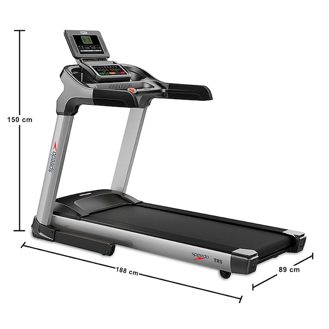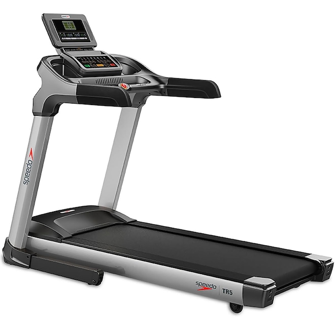 A esteira TR5 é o modelo premium residencial da Speedo. Muito confortável, prática, silenciosa, dobrável e com inclinação eletrônica, ela é recomendada para caminhadas mais intensas e corridas.