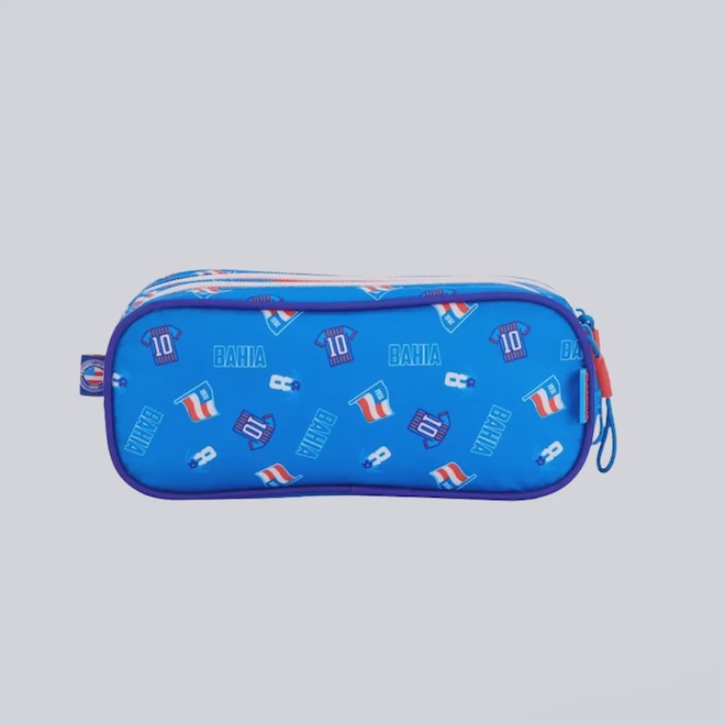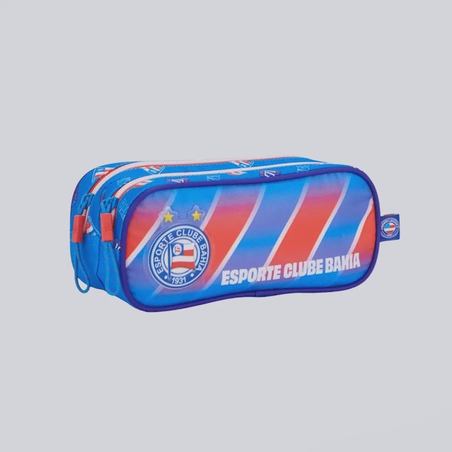 Dimensões aproximadas (A x L x P): 9 x 21,5 x 7 cmCompartimentos: Dois principais amploComposição: 80% Poliéster e 20% Policlorero de VinilaAbertura/fechamento: ZíperCor predominante: AzulPeso aproximado: 100 gIndicado para: CasualEscudo: EstampadoClube: BahiaOrigem: ImportadaGênero: UnissexTamanho único