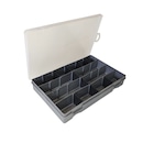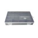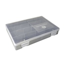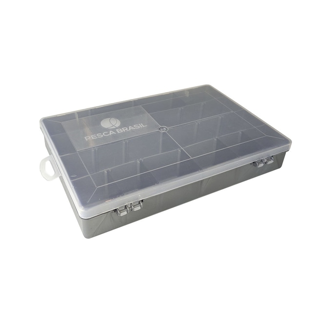 Estojo em material resistente para armazenar iscas, que permite a criação de até 14 repartições.