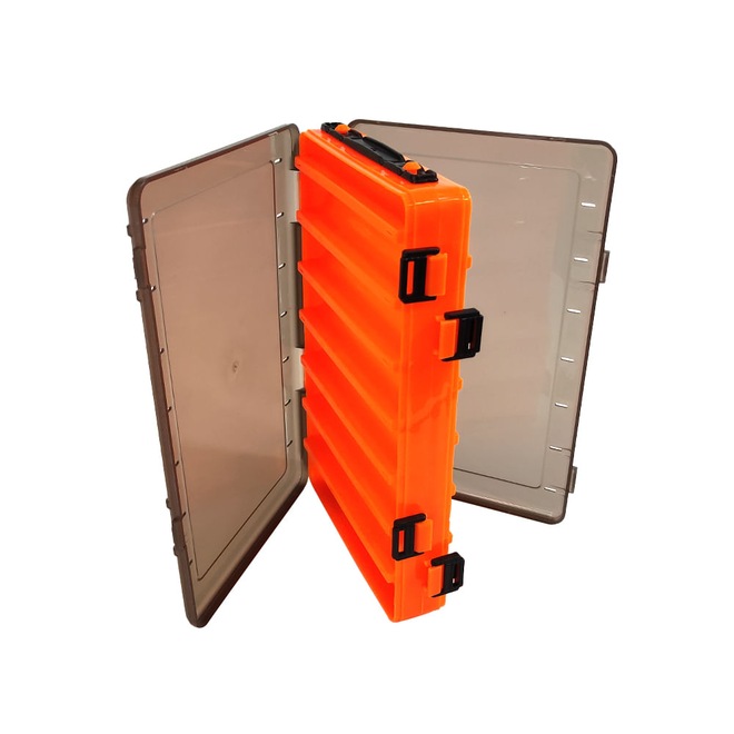 Fabricado em material super resistente, esse novo modelo de estojo comporta até 14 iscas de forma individual, sendo que cada uma fica perfeitamente acondicionada dentro do estojo.