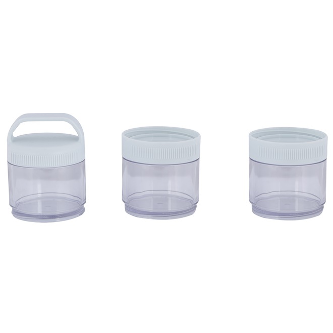 Leve e prático, o Estojo Multi Uso Prottector apresenta três peças de perfeito encaixe para guardar vitaminas, proteínas, cápsulas, suplementos, frutas secas e petiscos. Esses potinhos de 100 ml cada são resistentes, livres de BPA, sendo uma excelente escolha para quem segue dietas de emagrecimento e precisa dosar a quantidade dos ingredientes para repor os nutrientes nas diversas ocasiões do dia a dia.
